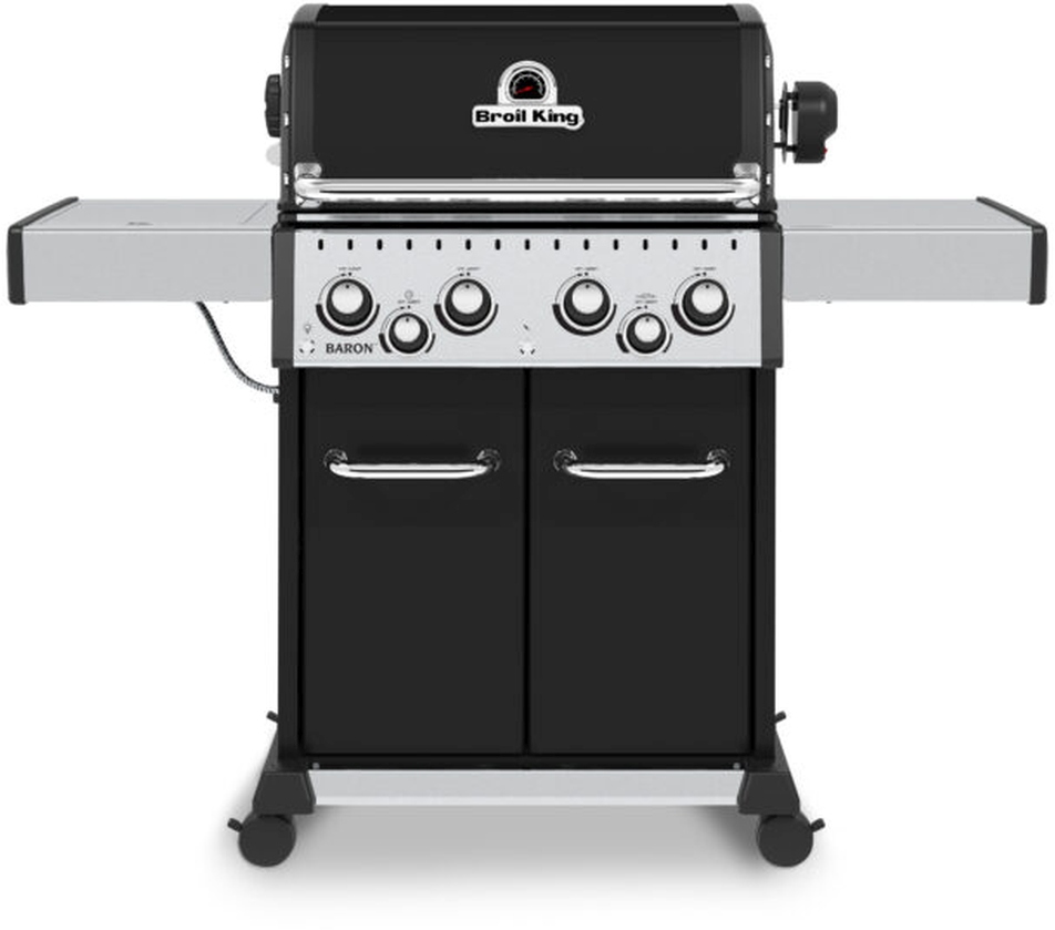 The Baron™ 490 PRO features a 460 sq. in. primary cooking surface and includes a durable cast aluminum oven, 4 stainless steel Dual-Tube™ burners, illuminated control panel lights, stainless steel Flav-R-Wave™ cooking system, and electronic ignition. All 400 PRO series include stainless steel 8 mm rod cooking grids, stainless steel warming rack, stainless steel drop-down side shelves, and enclosed black cabinet base.Read More